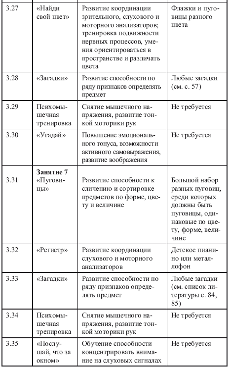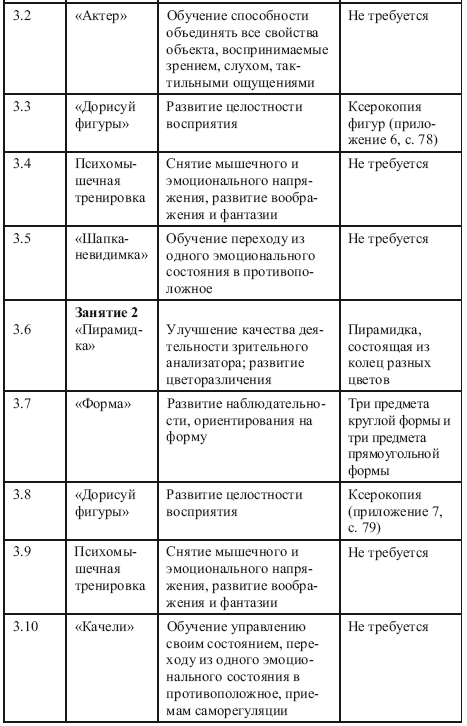Комплекс индивидуальных занятий рассчитан на детей, в психическом развитии которых наблюдается лишь отклонение от нормы, а не симптом психического заболевания, т. е. проводить такие занятия не рекомендуется для детей с психическими и нервными заболеваниями. Грамотное проведение коррекции интелектуального развития позволяет подготовить ребенка к школе: в ходе игровых занятий развиваются мышление, внимание, восприятие, память.