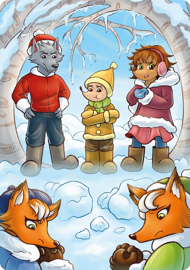– Вы зачем наших снеговиков ломаете? – зарычал на них волчонок.