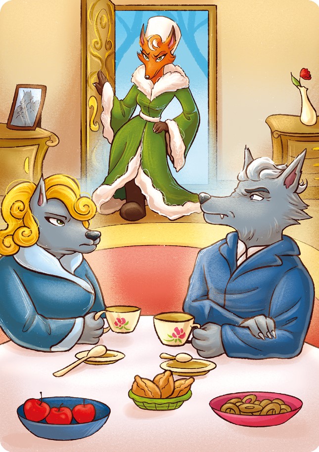 Плотно пообедав, волки принялись за чай. Только разлили по чашкам, как к ним постучали. Это пришла мама лисичек, госпожа Лисиция. И прямо с порога начала: