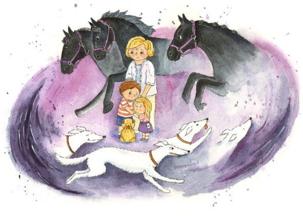 Жила-была девочка, потом она выросла, стала мамой, и вот наступило ее счастливое время. Она стала Бабуля- кой, так в шутку называла себя бывшая девочка. Она обожала своих внуков и, как все бабули, мечтала, чтобы они выросли умными и добрыми, были счастливыми в своей взрослой жизни. Вместе они смеялись и занимались какими-нибудь важными делами: рисовали, танцевали, читали, играли в домино, жарили блинчики, гуляли, придумывали песенки, рассуждали о жизни… и много еще чего. Но вот однажды у старшего внука Саши заболела собачка, мопсик, мама и папа возили его к ветеринарам, но результата не было. Все загрустили… У бабушки был знакомый волшебник (так она считала), человек, который умел разговаривать с животными. Правда, этого никто не видел, но она-то точно знала. У него жили лошади и собаки.