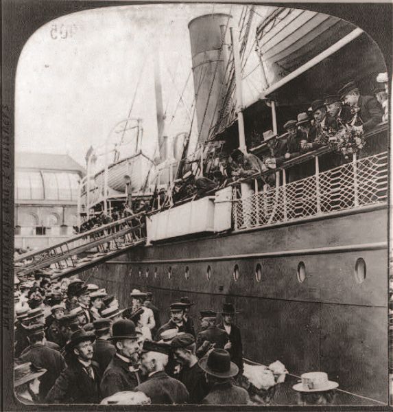 Эмигранты, покидающие Европу. 1905 год. Библиотека Конгресса США, коллекция стереофотографий