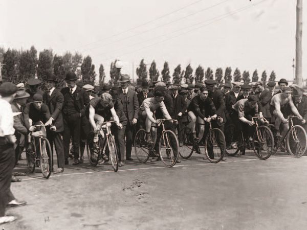 Велосипедисты на старте. 1915 год. Библиотека Конгресса США, коллекция Харриса и Ивинга