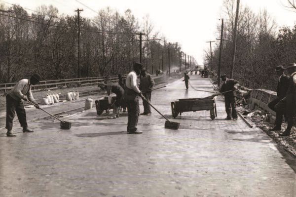 Дорожные работы. 1910–1920 годы. Нью-Йоркская публичная библиотека, коллекция Национальной ассоциации автодорог