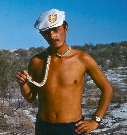Научный отдел в 1982 году в пустыне. Начальник в форменной фуражке. Я – справа от него.