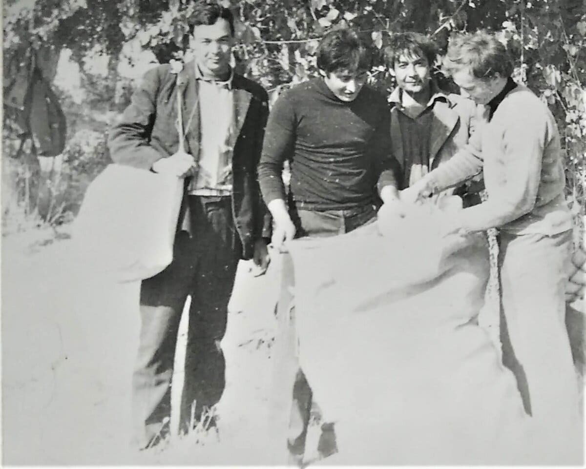 Сбор хлопка проходит весело. Слева направо: бухгалтер, с.н.с., егерь. Фото из семейного архива