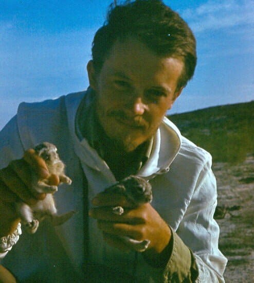 Первые поселенцы стационара Бурчлибурун: Сергей Антипов и Володя Шубенкин. Фото 1982 г.