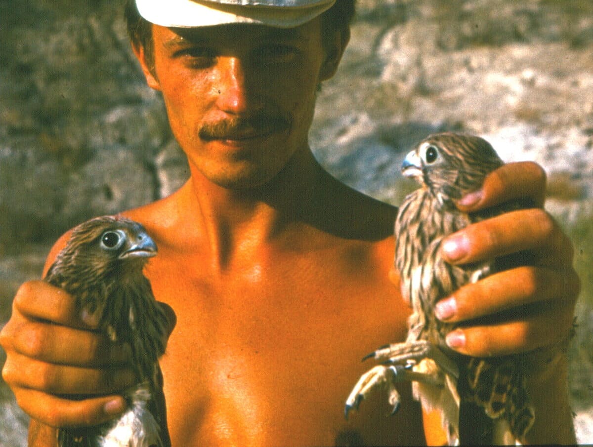 Обследование гнезда на отвесной скале. Это другое гнездо: беркута. Но лестница та же