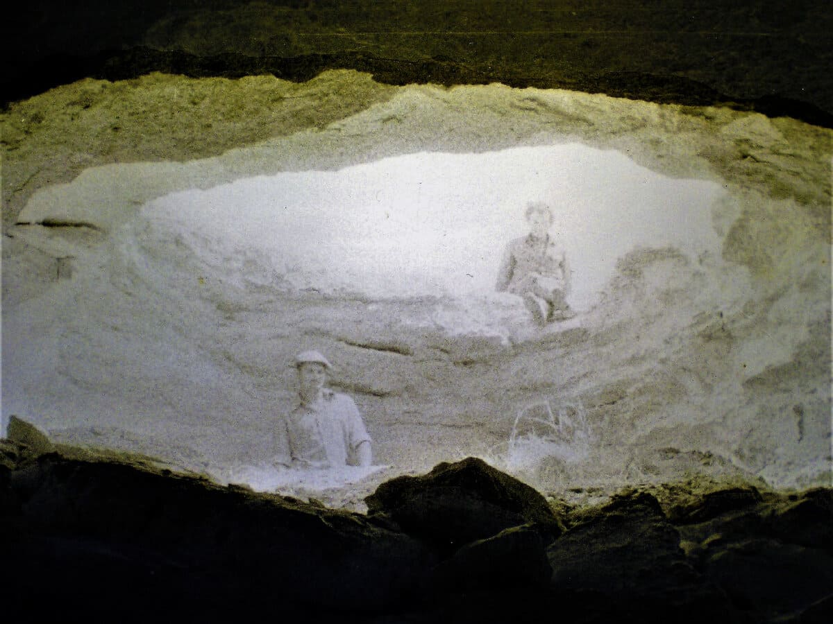 Первыми приезжими были спелеологи-археологи из Москвы. Обследовали карстовые пещеры и пещеры, в которых селились люди в древности. Благодаря их снаряжению удалось спуститься в пещеру с очень узким и крутым спуском. И там на дне оказалось зеркало воды. Это была единственная недоступная для нас пещера в окрестностях.