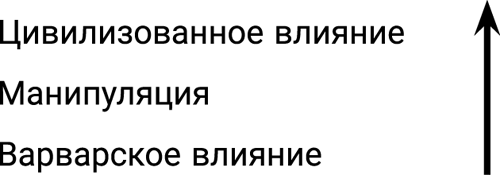Манипуляция располагается между варварским уровнем взаимодействия и цивилизованным уровнем.