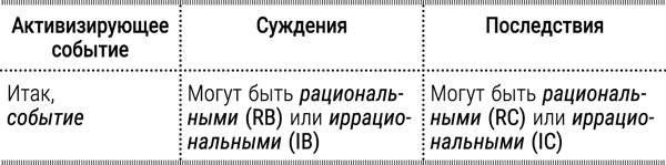 Эллис[9] строит свое описание эмоционального поведения в последовательности, легко запоминаемой как простая мнемоника АВС, где: