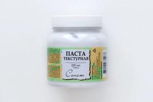 Обладает густой консистенцией, тонируется акриловыми красками. Подходит для работы на стекле, держится достаточно крепко. Подходит для работы в различных объёмных техниках, имитации фресок, с трафаретными объемами, барельефной живописью.