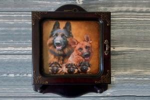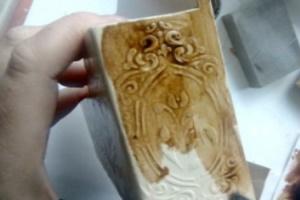 Либо тонировка объёмной поверхности, когда битумный лак в результате остается в глубине рельефа, приглушая при этом основной цвет работы. Выглядит это словно пылька забилась в глубину узора. А сама поверхность чуть потемнела, потускнела от времени.