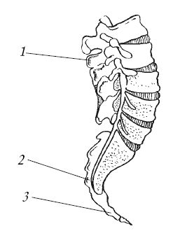 Рис. 5. Нижняя часть позвоночного столба: 1 – поясничный отдел; 2 – крестец; 3 – копчик