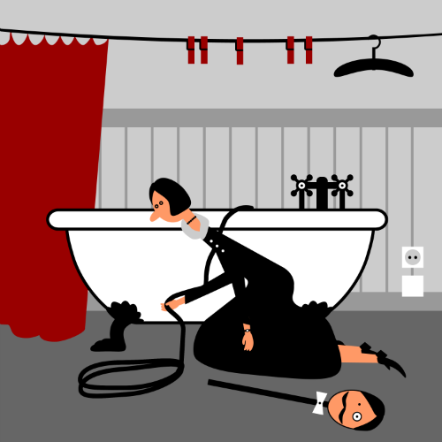 – Я очень тронут, мадам! – отвечает Джеймс из-под ванны. – Но к сожалению, шланг уполз слишком далеко. Я не могу его достать.