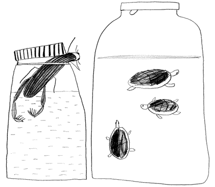 У них черепахи были. Три. Мама хотела одну, но тут так вышло, что ей соседи сказали: если вы наших двух не возьмёте, мы их на волю выпустим. А если южных черепах на волю в средней полосе выпускать, не на волю получается, а на погибель. С особой жестокостью. Вот ещё двух и взяли.