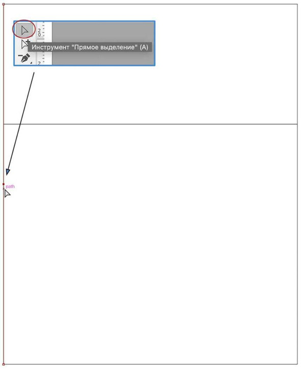 1) Кликните на инструмент «Прямое выделение» в панели «Инструменты».