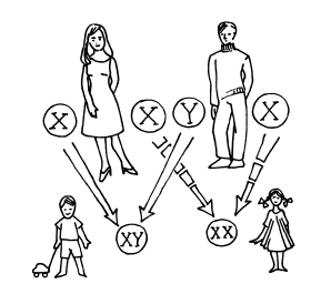 Хромосомы, отвечающие за пол, называются X и Y – такое название они получили из-за своей формы, действительно напоминающей эти буквы латинского алфавита. В женских яйцеклетках всегда содержится только Х-хромосома, в мужских половых клетках – сперматозодах – может быть Х или Y. Если сперматозоид, который оплодотворяет яйце клетку, тоже несет в себе Х-хромосому, то в результате получается комбинация ХХ – и на свет появляется девочка. А если сперматозоид содержит Y-хромосому, то получается комбинация XY – и рождается мальчик (рис. 4).