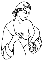 Ухаживать за грудью лучше с самого начала беременности, потому что иначе на груди могут образоваться растяжки (стрии). Регулярно смазывайте кожу маслом или специальным кремом и массируйте грудь. Для этого обхватите грудь обеими руками и, нежно нажимая кончиками пальцев, поглаживайте грудь по направлению к соску (рис. 10). Сам сосок и кружок около него не нужно смазывать маслом, иначе они станут слишком нежными.