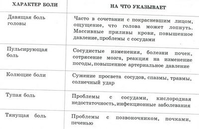 Головные боли, возникающие при воспалении тройничного нерва, в таблицу не занесены.