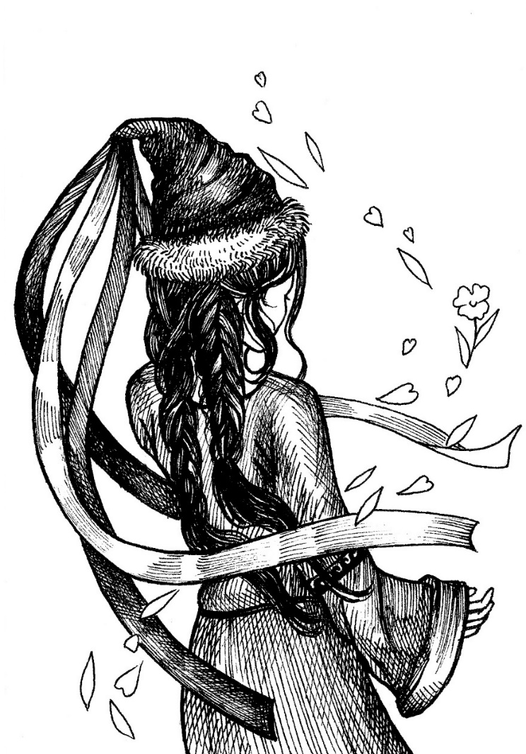 Дочь севера вышла проводить людей, которых принёс океан. Она долго смотрела им вслед, прикрыв рукой глаза, ветер трепал разноцветные ленты на её островерхой унь – Ула звала весну.