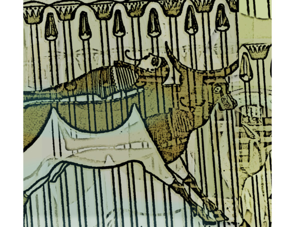 РИС. 19. Осирис в облике Небесного быка, несущего на спине мумию. Материал из Википедии