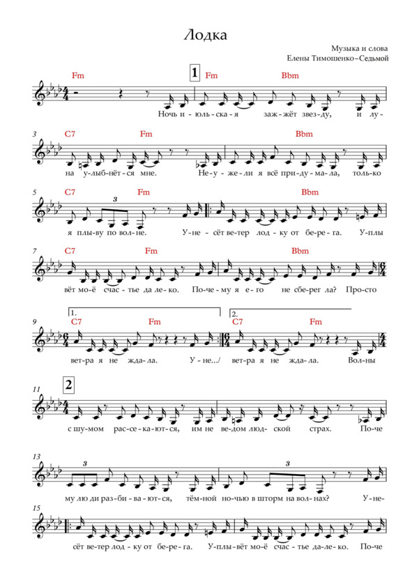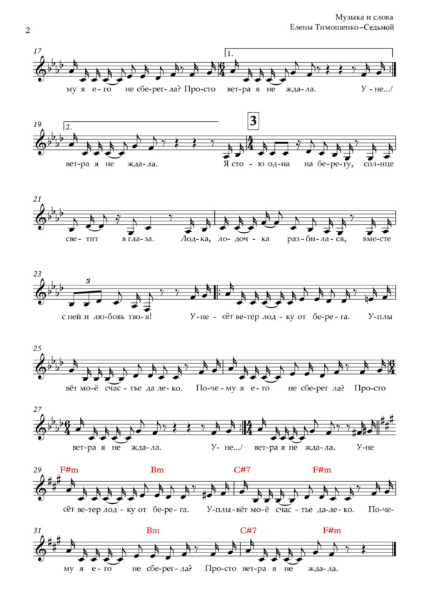 Унесёт ветер лодку от берега.Уплывёт моё счастье далеко.Почему я его не сберегла?Просто ветра я не ждала.2 куплет