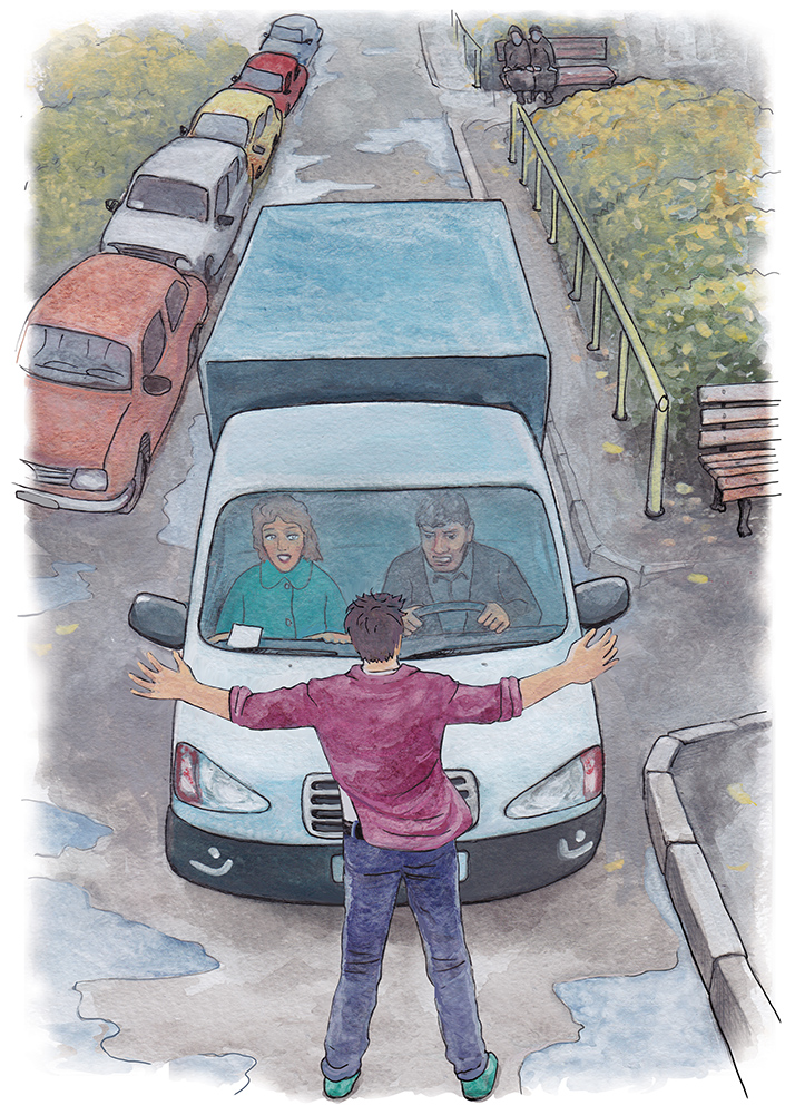 «Ду – рак, ду – рак», – стучала кровь в висках, пока он бежал по лестнице, преодолевая по 2 пролёта разом. Машина уже тронулась, когда он выбежал из подъезда. В окне проплыло её напряжённое лицо: она сидела рядом с водителем. Практически не думая, он выбежал на дорогу перед грузовиком. Водитель ударил по тормозам, и «Газель», как в американских фильмах, остановилась, чуть толкнув его бампером.