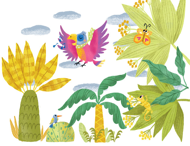 В это время попугай сел на ветку дерева и запел весёлую песенку.