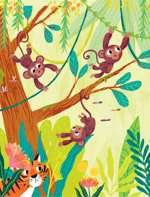 Хорошо, когда ты быстрый и ловкий и умеешь прыгать с ветки на ветку. Но что делать, если ты прыгнул, а твой хвостик – нет? Вот так и мартышка – спрыгнула с дерева, а хвостик зацепился за ветку.