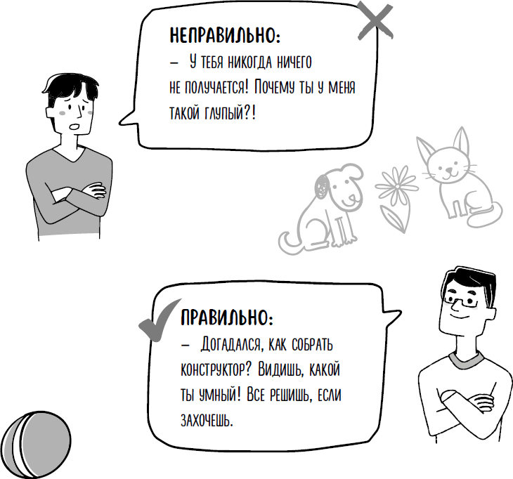 Бывает, что ребенок ошибается. Он еще очень мал, ему не хватает жизненного опыта, многие необходимые навыки не отработаны. Думаете, малыш из-за этого не переживает? Еще как! «У взрослых все получается, они все умеют. И шнурки завязывать, и гвозди забивать. А я – ничего», – думает он. Каждая неудача понижает его самооценку.