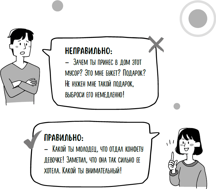 Помните: мы, родители, сами формируем поведение ребенка. Не забывайте хвалить малыша. Если поступки оставляют желать лучшего, все равно постарайтесь найти что-то хорошее, за что можно похвалить. А уж тем более когда видите, что малыш старался и теперь ждет вашего одобрения. Если его не последовало, ребенок может огорчиться.