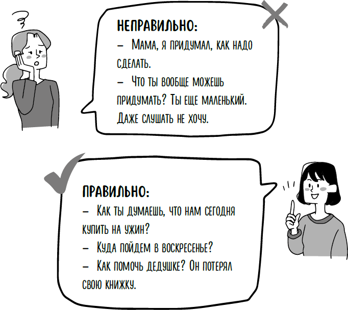 «Спрашивать совета у малыша? – подумают многие. – Что он может посоветовать?» Возможно, и не очень многое. Но он почувствует свою значимость, поймет, что его уважают, считаются с его мнением, что он – личность. А уж если его совет пригодится, гордости маленького человека не будет предела. Вы же сами хотите, чтобы он вырос сильным и смелым человеком. Вот и помогите ему стать таким: научите принимать решения и нести за них ответственность.