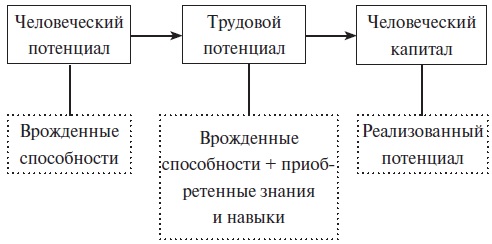 Рис. 2. Взаимосвязь человеческого потенциала, трудового потенциала и человеческого капитала