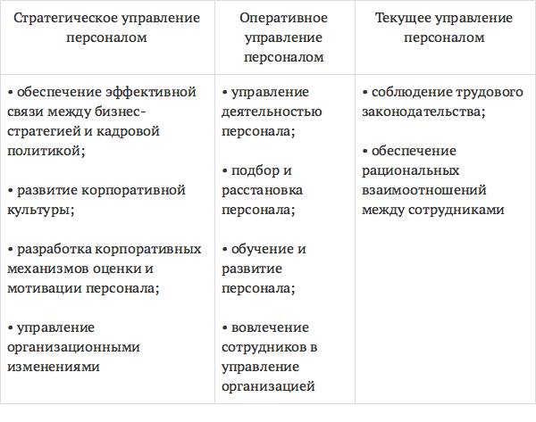 А. А. Хачатурян9 приводит различия между стратегическим, оперативным и текущим управлением персоналом (табл. 1).