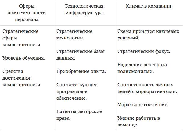 Обучение и карьерный рост – необходимая составляющая при совершенствовании и создании новых бизнес-процессов. Инвестиции в обучение, переобучение и повышение квалификации позволяют устранить пробелы в знаниях, ликвидировать разрыв между существующим уровнем компетентности и тем, который потребуется для достижения стратегических целей и задач организации. Кроме обучения и развития персонала Д. Нортон и Р. Каплан говорят о необходимости оценки организационных процедур и информационных технологий с целью повышения результативности деятельности сотрудников (табл. 6).