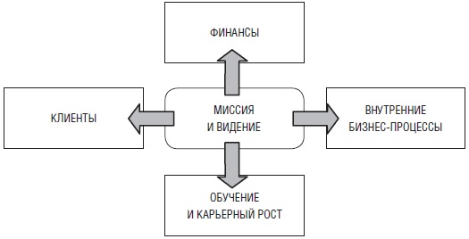 Другим инструментом оценки внутренней среды организации является сбалансированная система показателей (Balanced Scorecard), интерес к которой продолжает возрастать. Сбалансированная система показателей – это управленческая и стратегически-измерительная система, переводящая миссию и стратегию организации в сбалансированный комплекс интегрированных рабочих показателей15. Модель была предложена в начале 1990-х гг. Д. Нортоном и Р. Капланом по результатам исследования деятельности крупнейших компаний США. В основе модели лежат четыре основных показателя (рис. 3).