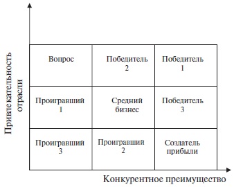 Недостаток матрицы БКГ заключается в том, что она предлагает четыре крайние позиции без учета средних показателей, которые могут быть у предприятия. Матрица Маккинзи, созданная по заказу General Electric для оценки собственного бизнеса, частично устраняет это недостатки за счет имеющихся средних значений. В основе матрицы лежат показатели привлекательности отрасли и конкурентоспособности предприятия. Три варианта оценки: высокая, средняя и низкая формируют девять квадрантов – от наименее перспективных (низкая конкурентоспособность, низкая привлекательность отрасли) к наиболее перспективным (рис. 9).