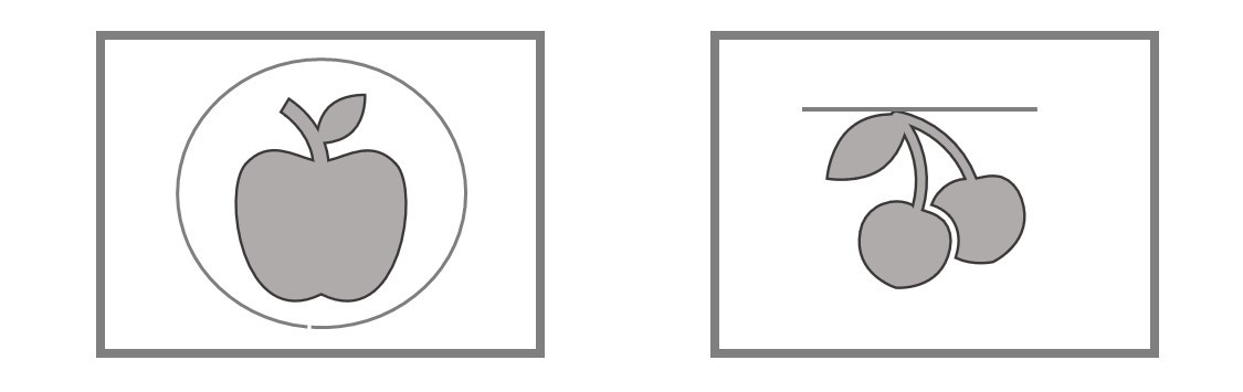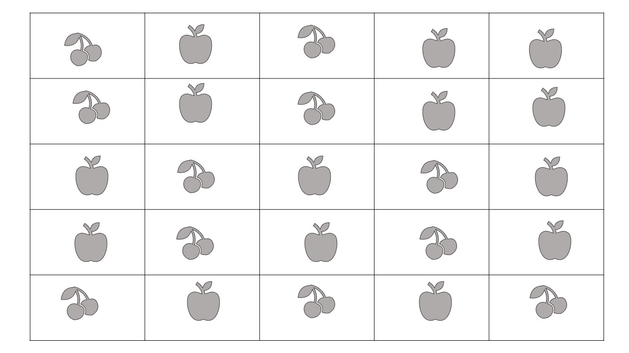 Обвести в кружок яблоко. Над вишенкой нарисовать палочку.