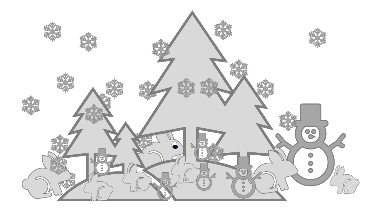 Посчитать, сколько снеговиков? Сколько зайчиков спрятались? Назвать признаки зимы.