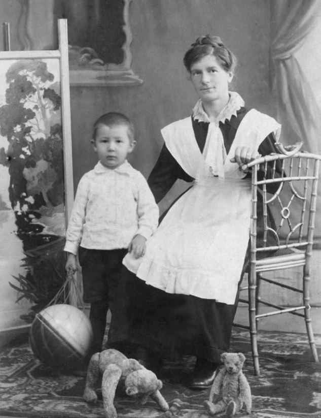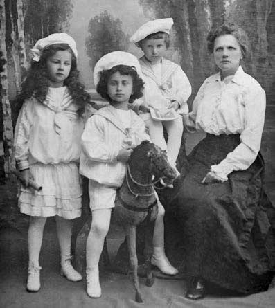 Вера, Лёва и Гриша Миримовы с Маргаритой Рудольфовной, 1914–1915 годы