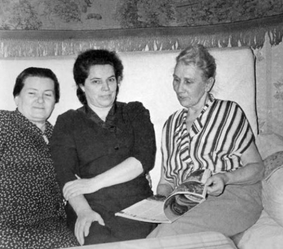 В комнате Ясинских. Слева направо: Елизавета Кирилловна Ясинская: Зинаида Николаевна Галущенко и моя бабушка, 1959