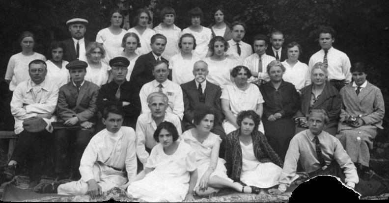 Выпускной класс экспериментальной школы при Казанском университете. Первая справа сидит – Евгения Гинзбург, третья справа сидит на земле – мама, 1928