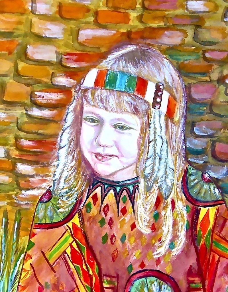 Наша маленькая внучка, насмотревшись фильмов про индейцев и в подражание их нарядам из перьев, сначала начала собирать Гошины выпавшие длинные перышки и пристраивать их себе в прическу, а потом и вовсе назначила его вождем их небольшого племени и соорудила ему на макушке букет из его собственных перышек. Малышка была в восторге от своего произведения и поставила для Гоши зеркальце во весь рост, чтобы и он оценил такую красоту.