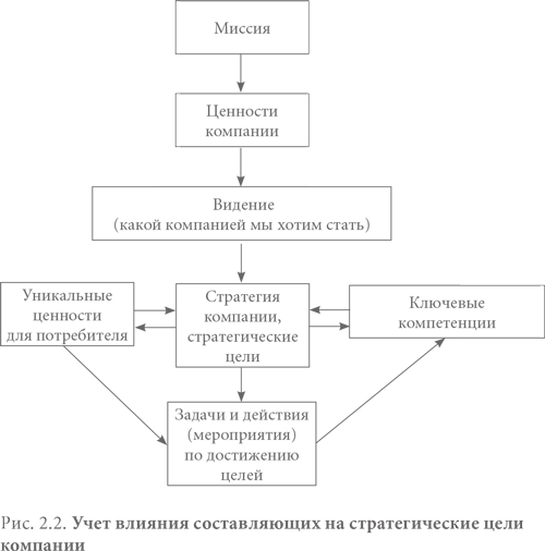 Будем ли мы учитывать ключевые компетенции компании и исходя из них те ключевые компетенции, которые должны иметь сотрудники? Получается, что для формирования целей компании нужно учесть еще и составляющие, перечисленные на рисунке 2.2?