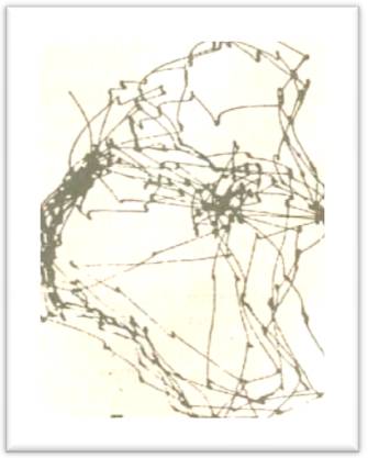 Кроме того, важная роль движений глаз для зрения определяется также тем, что для непрерывного получения мозгом зрительной информации необходимо движение изображения на сетчатке. Зрительное ощущение при неподвижных глазах и объектах исчезает через 1 – 2с. Если на глаз поставить присоску с крохотным источником света, то человек видит его только к момент включения или выключения, так как этот раздражитель движется вместе с глазом и, следовательно, неподвижен по отношению к сетчатке. Чтобы преодолеть такое приспособление (адаптацию) к неподвижному изображению, глаз при рассматривании любого предмета производит не ощущаемые человеком непрерывные и непроизвольные микро движения (сканирующий аппарат) трех видов. Тремор – мелкие, но очень частые быстрые колебания (дрожание) глазного яблока вокруг точки фиксации, сопровождают дрейф. Дрейф – медленное, плавное соскальзывание взора на десятые доли градуса (дрейфуют – медленно смещаются с точки фиксации взора), участвует в процессе удержания изображения в оптимальной зоне сетчатки, препятствует исчезновению восприятия объекта (направление дрейфа случайно) и саккады – микросаккады – быстрые перемещения взгляда в пределах одного градуса, восстанавливают заданное направление взора. Продолжительность каждого скачка равна сотым долям секунды. Чем сложнее рассматриваемый объект, тем сложнее траектория движения глаз. Они как бы «прослеживают» контуры изображения (Рис. 5), задерживаясь на наиболее информативных его участках (например, в лице это – глаза). Микросаккады, возникающие с определенным интервалом до нескольких секунд, как и дрейф, препятствуют развитию локальной адаптации, приводящей к возникновению «пустого поля». Вследствие каждого скачка изображение на сетчатке смещается с одних фоторецепторов на другие, вновь передовая информацию в зрительный (оптический) нерв.