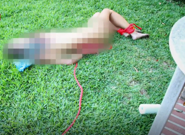 Тело Ребекки после того, как ее снял Адам с петли и положил на газон…