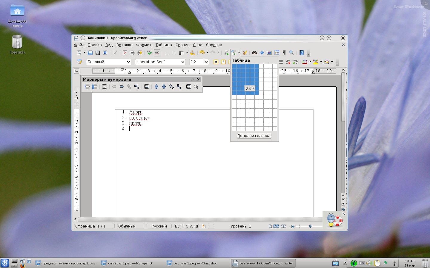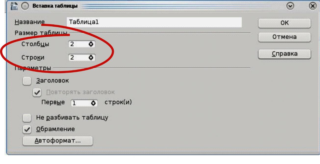 . Появится окно, в котором при помощи мыши укажите нужное количество строк и столбцов. Щелчок мыши вставляет таблицу в документ.
