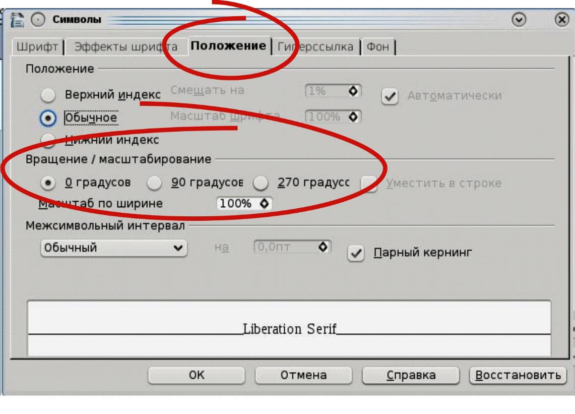 2. Откройте окно Символы. Выберите вкладку Положение.