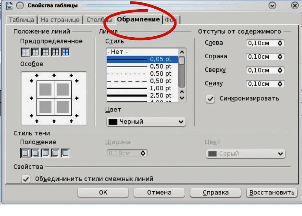 3. Появляется окно, в котором щелкаем на вкладку Обрамление: