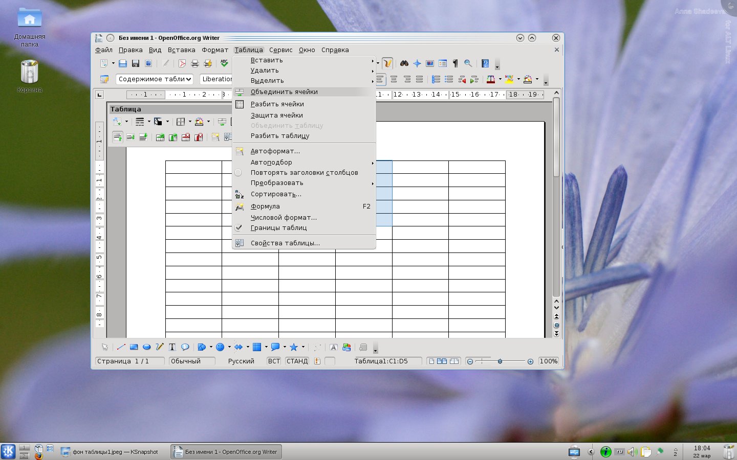 2. На панели Таблица нажать на кнопку Объединить ячейки: